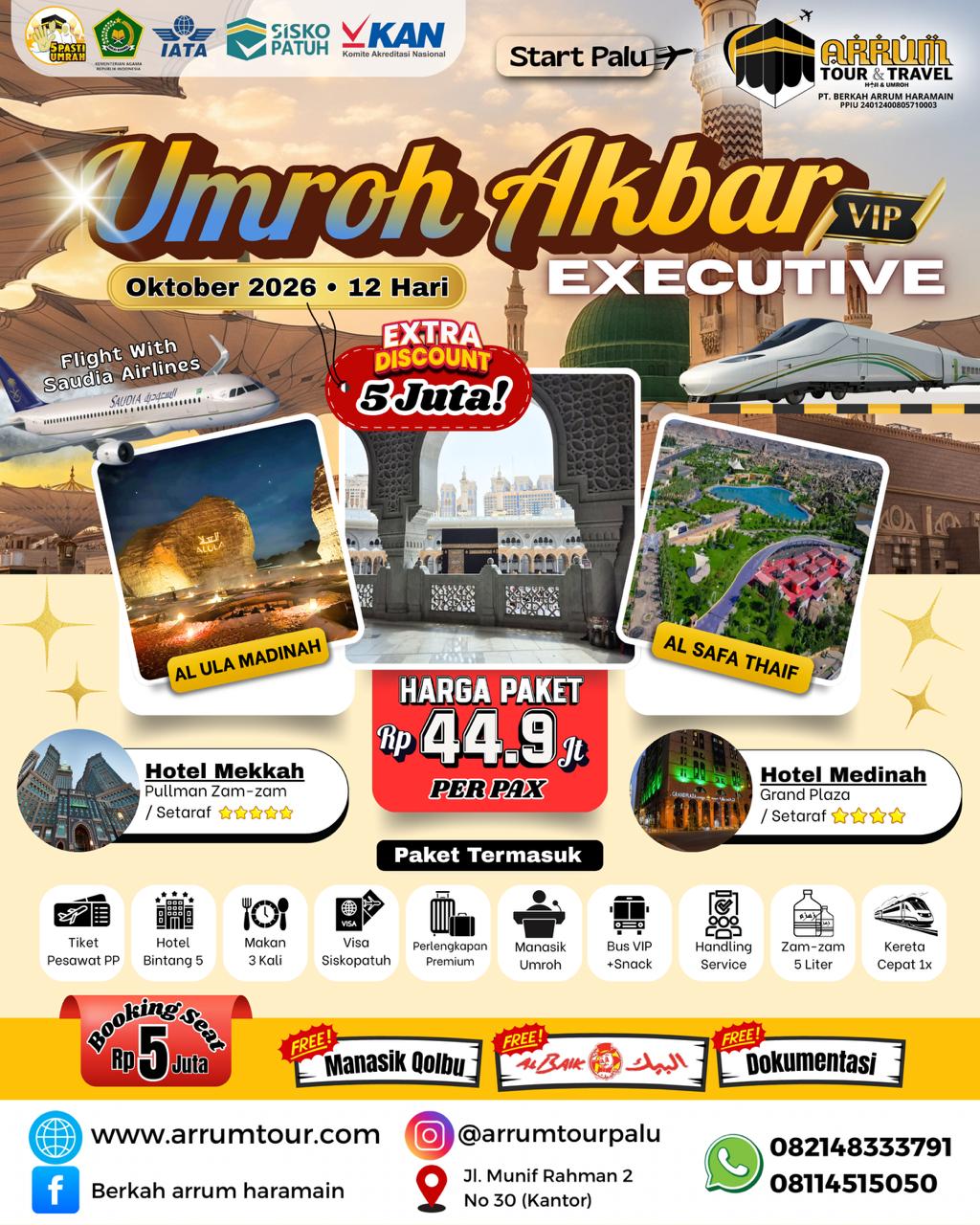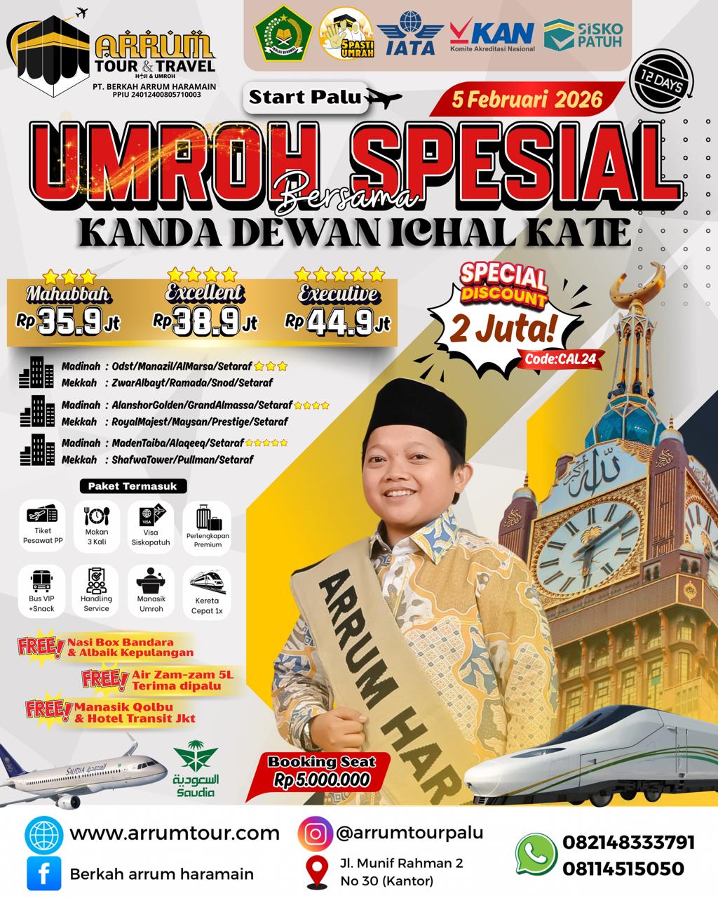 Bulan mei saya mendaftar umroh bersama anak dan istri melalui Arrum Tour, Kesannya sangat puas ya, apalagi pas ibadah umroh selalu di bimbing oleh Muthowwif dan Tour Leadernya yang ramah. Sukses terus Arrum Tour