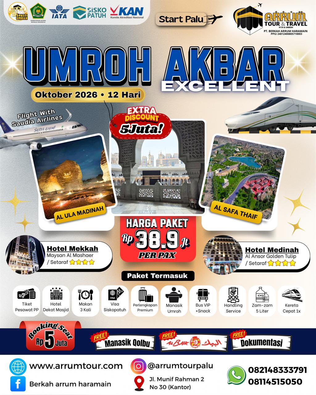Alhamdulillah… Saya berangkat umroh program Maulid Nabi dengan Arrum Tour & Travel, Kesannya luar biasa pelayanannya, fasilitas yang diberikan sesuai dengan yang di tawarkan terutama makannnya selama di saudi enak enak banget.