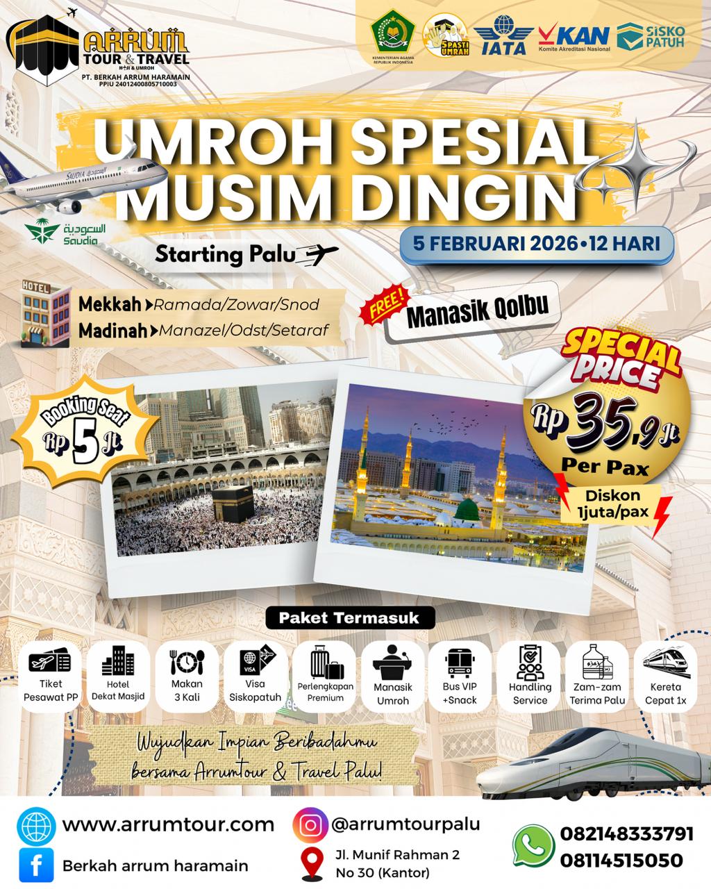 Rasakan perjalanan Religi anda dengan penuh aman dan nyaman bersama Umroh Arrum Tour